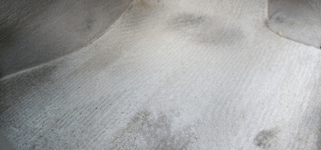 タバコの焼け焦げで意外と多いのがマットの焼け焦げ。モケットのマットであれば焦げ跡が目立たなくなるぐらいまで修復が可能です。